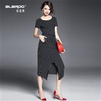 2105夏季女装新款 欧美时尚竖条纹拼接不规则短裙品质连衣裙