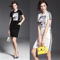 2015夏季女装 欧美高端圆领短袖印花真丝欧根纱修身大摆a字裙