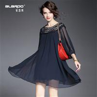 2015夏季新款女装 时尚韩版重工盘花钉钻纯色套头宽松大摆连衣裙