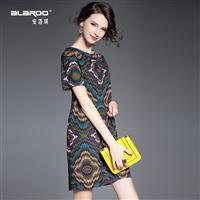 2015品牌女装新款 欧美圆领短袖魔幻印花时尚宽松品质连衣裙