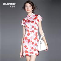 2015夏季新款女装 复古中国风气质立领包肩袖印花修身包臀旗袍