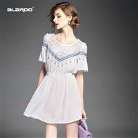 2015欧美大牌钉珠喇叭袖重工绣花镂空弹力收腰修身a字裙短裙夏