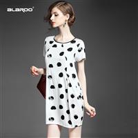 2015夏季女装 淑女气质圆领时尚圆点喷墨印染宽松娃娃裙