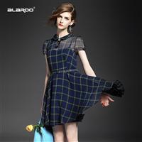 2015夏 翻领钉珠蝴蝶结淑女气质格纹修身连衣裙送吊带