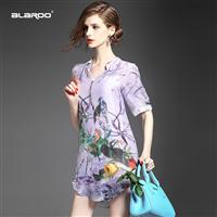 2015夏 欧美高端时尚V领钉钻真丝麻印花不规则一步短裙