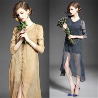 2015夏欧美炒色弹力真丝中长款空调衫+纯色修身打底背心裙两件套