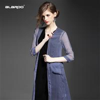2015夏季女装新款 欧美纯色钉珠镶金边不规则长款真丝开衫外套