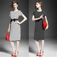 2015欧洲站夏季女装新款 甜美波点印花蝴蝶结收腰修身一步裙显瘦