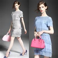 2015夏季新款女装 欧美大牌纯色镂空流苏拼接铜氨丝修身连衣裙