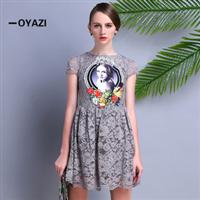 2015夏装 新款女装 欧美大牌美女头像性感蕾丝短袖连衣裙