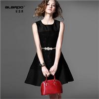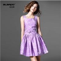 2015品牌女装春季新款圆领浮雕提花显瘦收腰无袖连衣裙