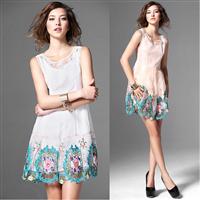 2015春季女装新款圆领重工镂空绣花刺绣收腰无袖连衣裙