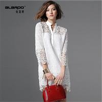 2015春夏季女装新款立领九分袖纯色水溶花拼接一步连衣裙