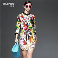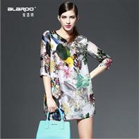 2015春季女装新款 数码印花真丝欧根纱宽松中袖连衣裙