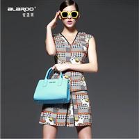 2015春夏女装新款 西西里异国风情印花圆领收腰修身连衣裙