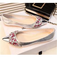 2015新潮款欧美风女鞋真皮水钻尖头平底鞋女单鞋