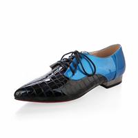 2015春季新款全真皮女鞋超炫牛漆皮复古石头纹拼色女单鞋