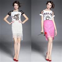 2015夏 纯色蕾丝真丝欧根纱拼接修身包臀不规则半身裙
