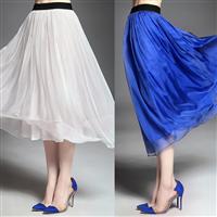2015夏季新款 弹力收腰拼接纯色气质大摆中长半身裙
