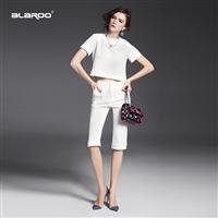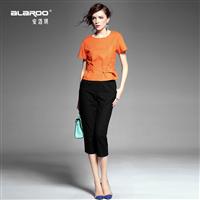 2015夏季女装新款 圆领短袖时尚套头短上衣+纯色修身七分裤套装