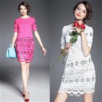 2015夏 圆领水溶绣花钉钻纯色上衣+弹力修身印花蓬蓬半裙套装