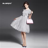 2015夏季女装 优雅气质弹力针织蝴蝶结蕾丝拼接网纱裙摆修身a字裙