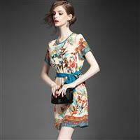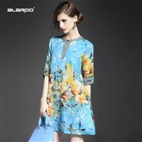 2015夏季新款 名媛气质圆领花朵印花收腰修身透气套头连衣裙女
