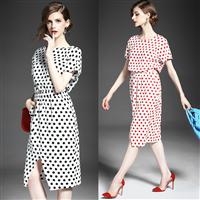 2015欧洲站高端棉麻女装 甜美波点弹力收腰修身一步中长连衣裙夏