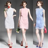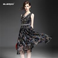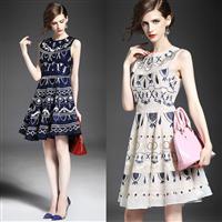 2015夏季女装精品 欧美大牌重工绣花圆领无袖修身a字裙显瘦