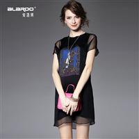 2015夏装新款 圆领短袖人像印花套头修身一步短裙