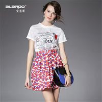 2015夏装新款 欧美大牌字母印花短袖女T恤+蓬蓬半裙套装两件套
