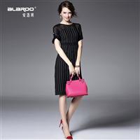 2015夏装 新款女装 欧美大牌时尚个性不规则边条纹连衣裙