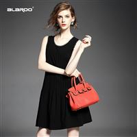 2015欧美大牌纯色压褶弹力修身小黑裙无袖连衣裙