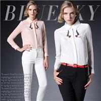2015欧美风高端春装真丝衬衫女长袖欧洲站桑蚕丝上衣衬衣